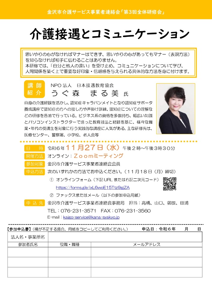 対象:金沢市介護サービス事業者連絡会会員
