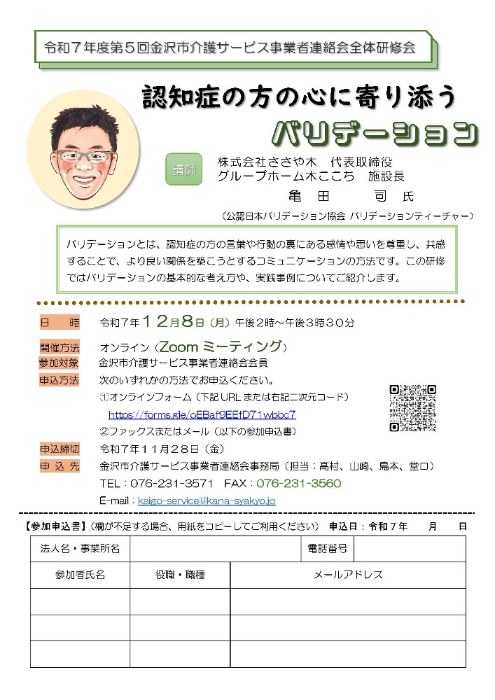 対象:金沢市介護サービス事業者連絡会会員